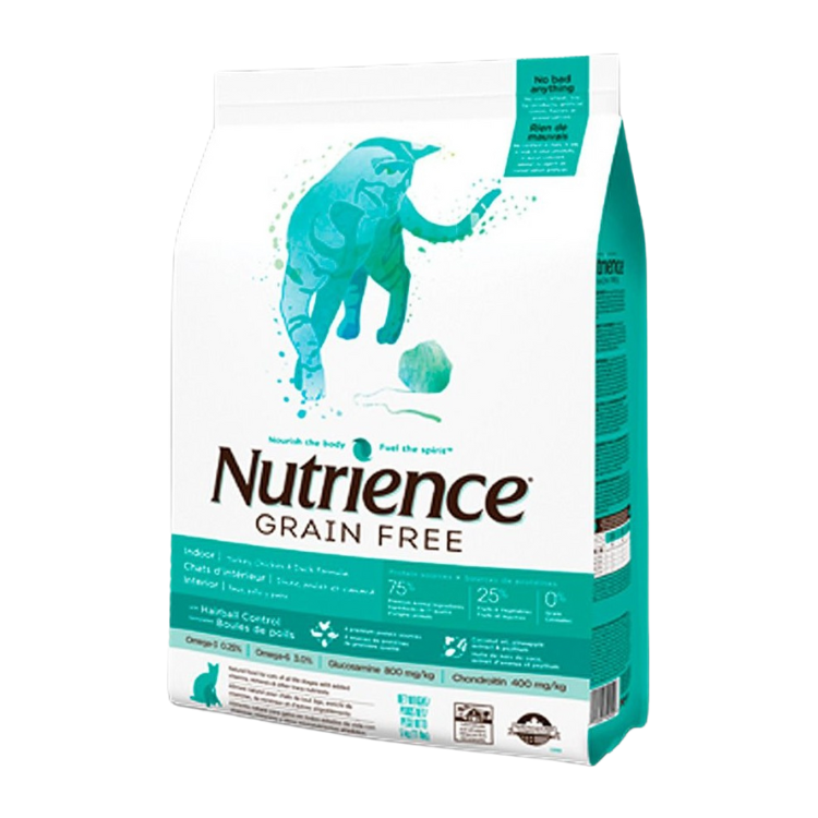 Nutrience Grain Free Indoor está formulado para satisfacer las necesidades únicas de los felinos que viven dentro de casa, ofreciendo una nutrición superior sin granos para una digestión óptima. Con una deliciosa mezcla de pavo, pollo y arenque, esta receta no solo es irresistible, sino que también está llena de proteínas de alta calidad para mantener su energía y vitalidad en cada rincón de tu hogar.