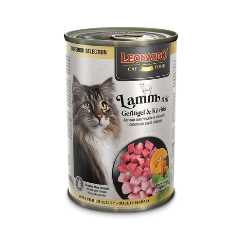 Lata Leonardo Gato Superior Selection Cordero & Ave Calabaza 400 gr