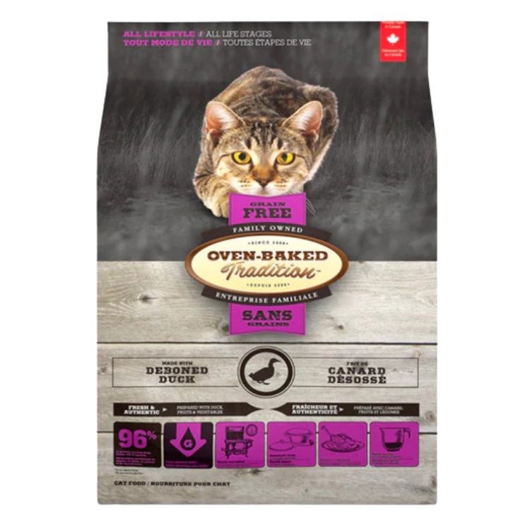 Dale a tu felino el festín que se merece con el alimento Oven-Baked Tradition Grain-Free de Pato