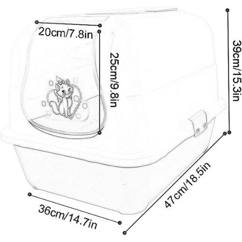 • Su estructura cubierta y la puerta evitan que la arena se esparza fuera de la caja, manteniendo el suelo de tu hogar impecable.