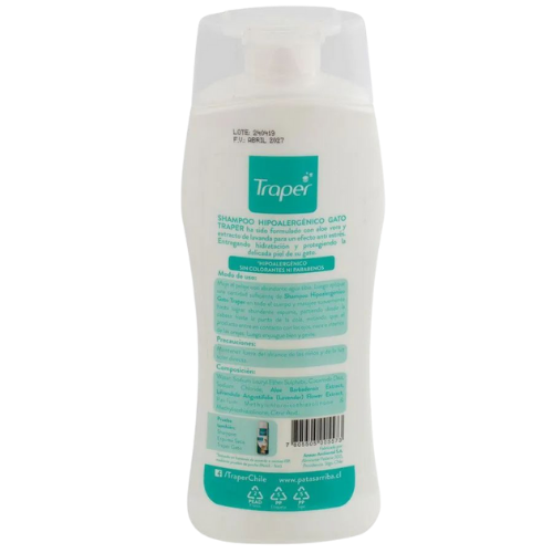 Mantén a tu felino limpio, fresco y protegido con el Shampoo Hipoalergénico para Gatos Lavanda Traper de Anasac. Su fórmula suave, libre de ingredientes agresivos, está diseñada para cuidar las pieles más sensibles, evitando irritaciones y proporcionando una limpieza profunda pero delicada.