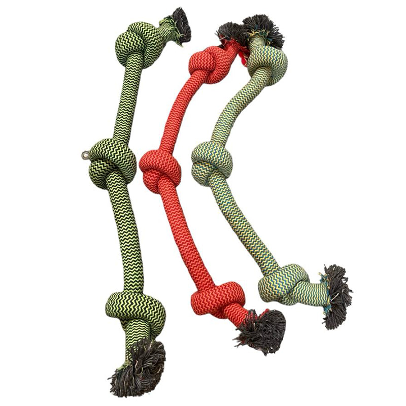 Juguete para mascota cuerda con 3 nudos surtido (verde o rojo)