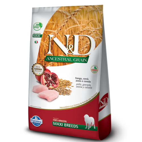 N&D Ancestral Grain de Farmina es un alimento científicamente desarrollado que combina proteína de pollo de alta calidad con el poder de los granos ancestrales como la avena y la espelta. Su fórmula está específicamente diseñada para satisfacer las necesidades de perros adultos de razas grandes, brindándoles la energía y el soporte estructural que necesitan para una vida plena y activa.